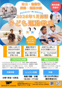 先日、2026年1月1日~1月31日までのクラススケジュールをご案内させていただきましたが、THE BLAZE FIT. MAGOMEでは、2026年1月より「小学1年生~6年生」を対象としたKIDSプログラムを新たに開講いたします。
